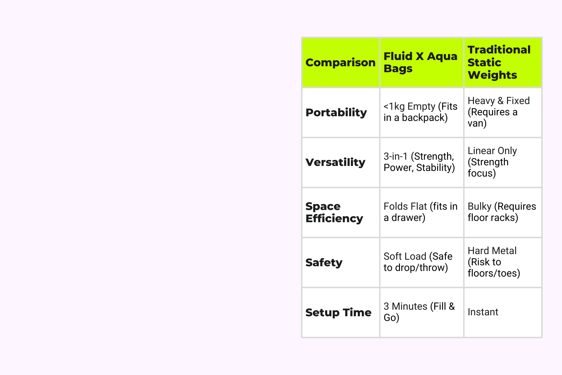 Coach's Tip: Due to the "Live Weight" instability, a 15kg aqua bag feels significantly heavier and harder to lift than a 15kg dumbbell.